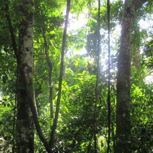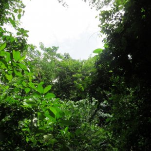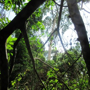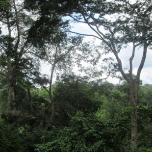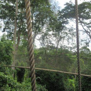 Stef completeing her wlak across 1 of 7 very narrow and very shaky canopy bridges -