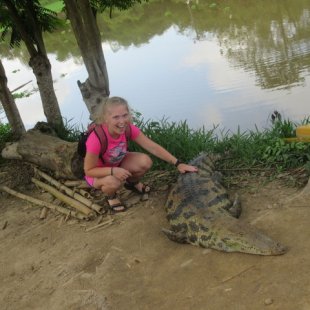 Our "Croc Trainer" who also doubles as a chef at Hans Cottage.... -