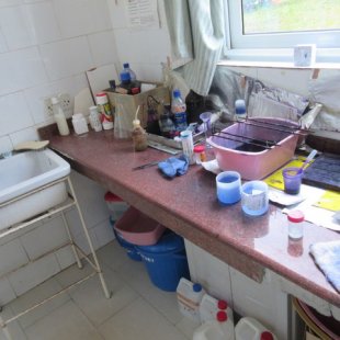 The office at the Mat. Ward. The delivery room is to the left, seperated by a thin blue cu -